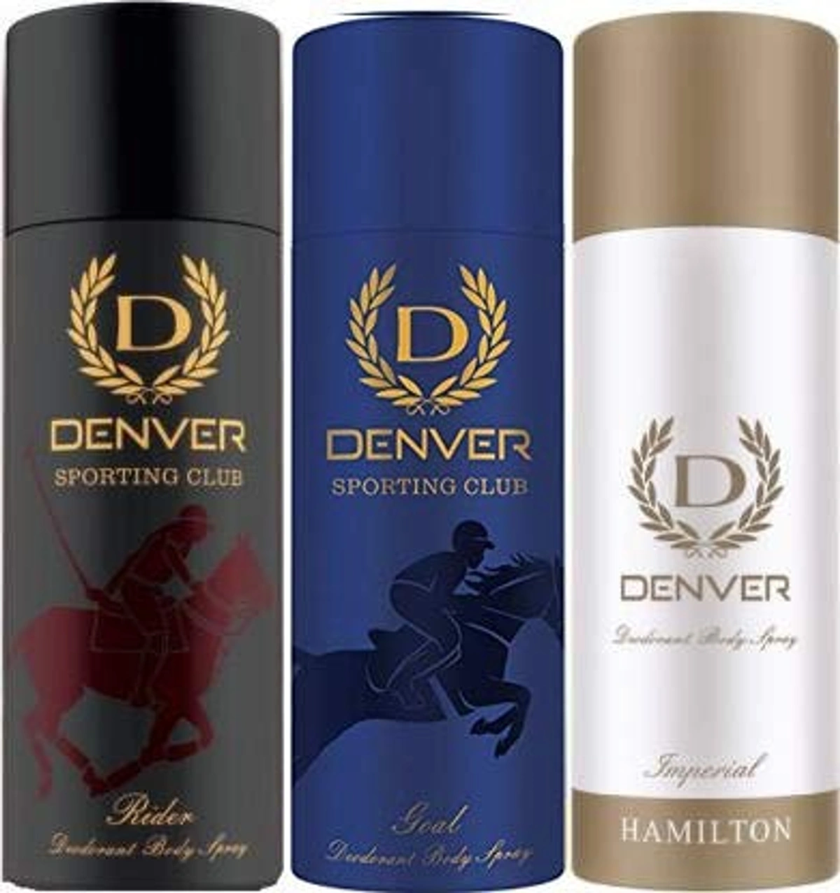 DENVER Imperial, Rider & Goal Deodorant -165ML Each (Pack of 3) | Long Lasting Deo for Men