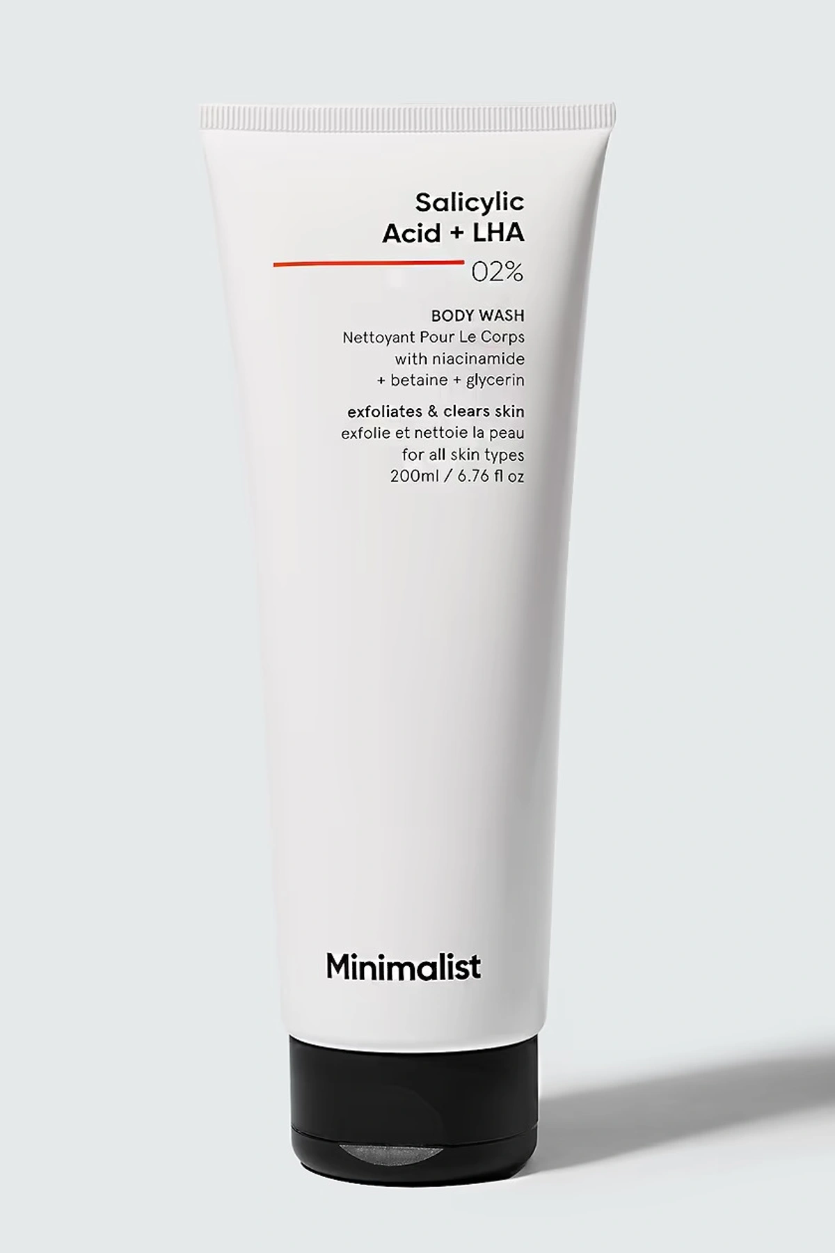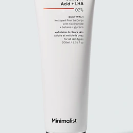 A gentle, exfoliating body wash that provides bump-free soft skin without compromising the skin barrier. It contains a powerful combination of Salicylic Acid (BHA) + LHA in a combination of 2% with mild surfactants.